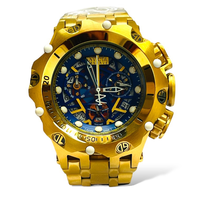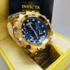 Relógio Invicta 16805 Hybrid Skeleton Reserve Dourado Fundo Azul Masculino Lançamento